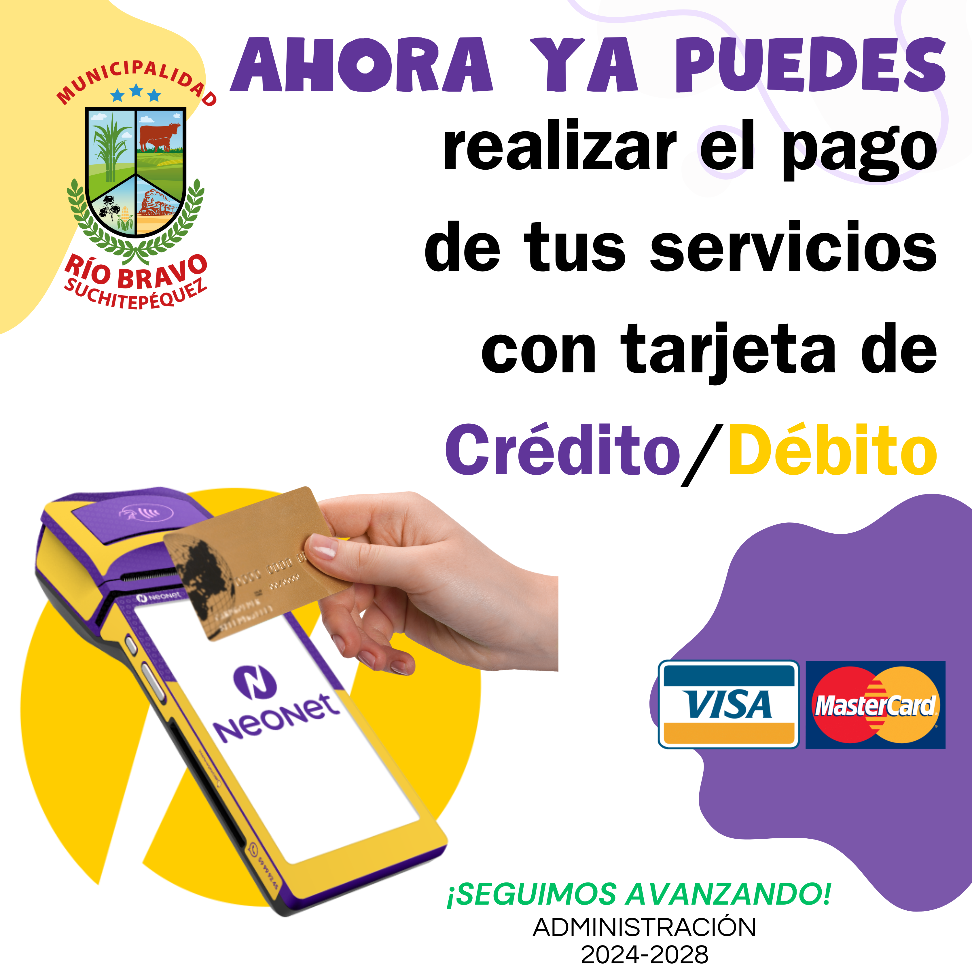 La Municipalidad de Río Bravo se complace en anunciar que ahora contamos con sistemas de pago POS, permitiendo a los ciudadanos pagar sus servicios con tarjeta de crédito o débito. Esta nueva opción busca facilitar y agilizar los procesos de pago para todos. ¡Seguimos trabajando para mejorar nuestros servicios!